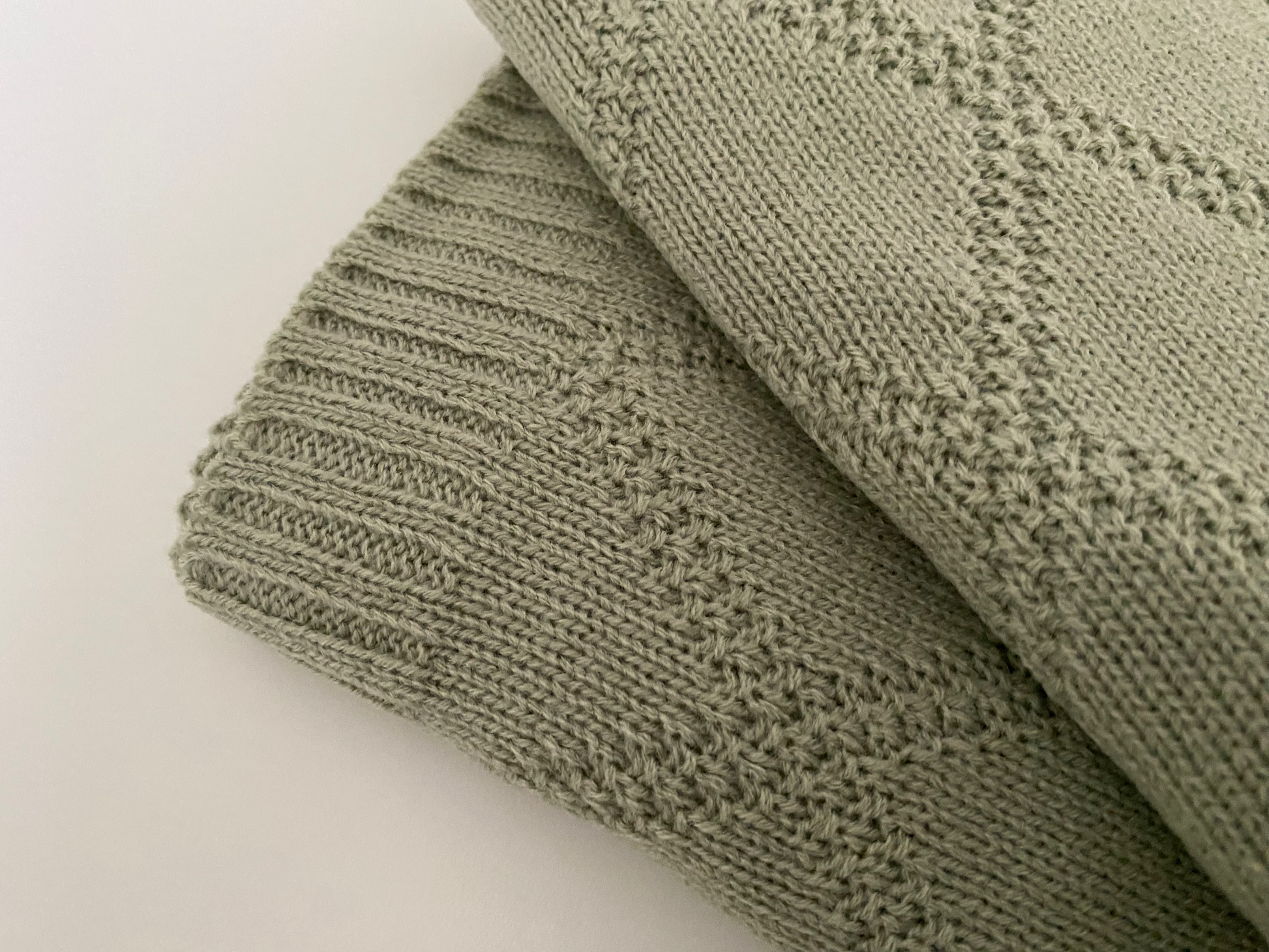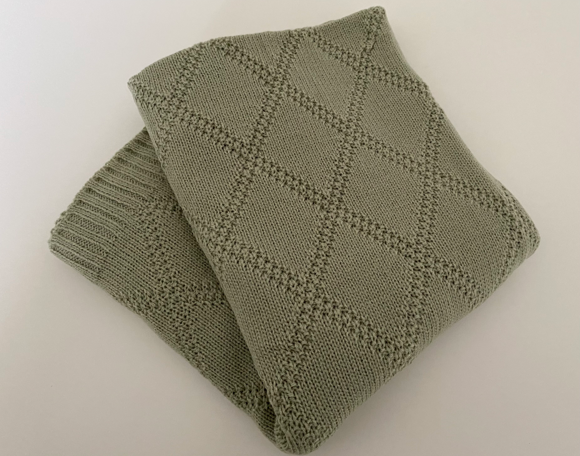 Olivengrønt babytæppe med sødt mønster.