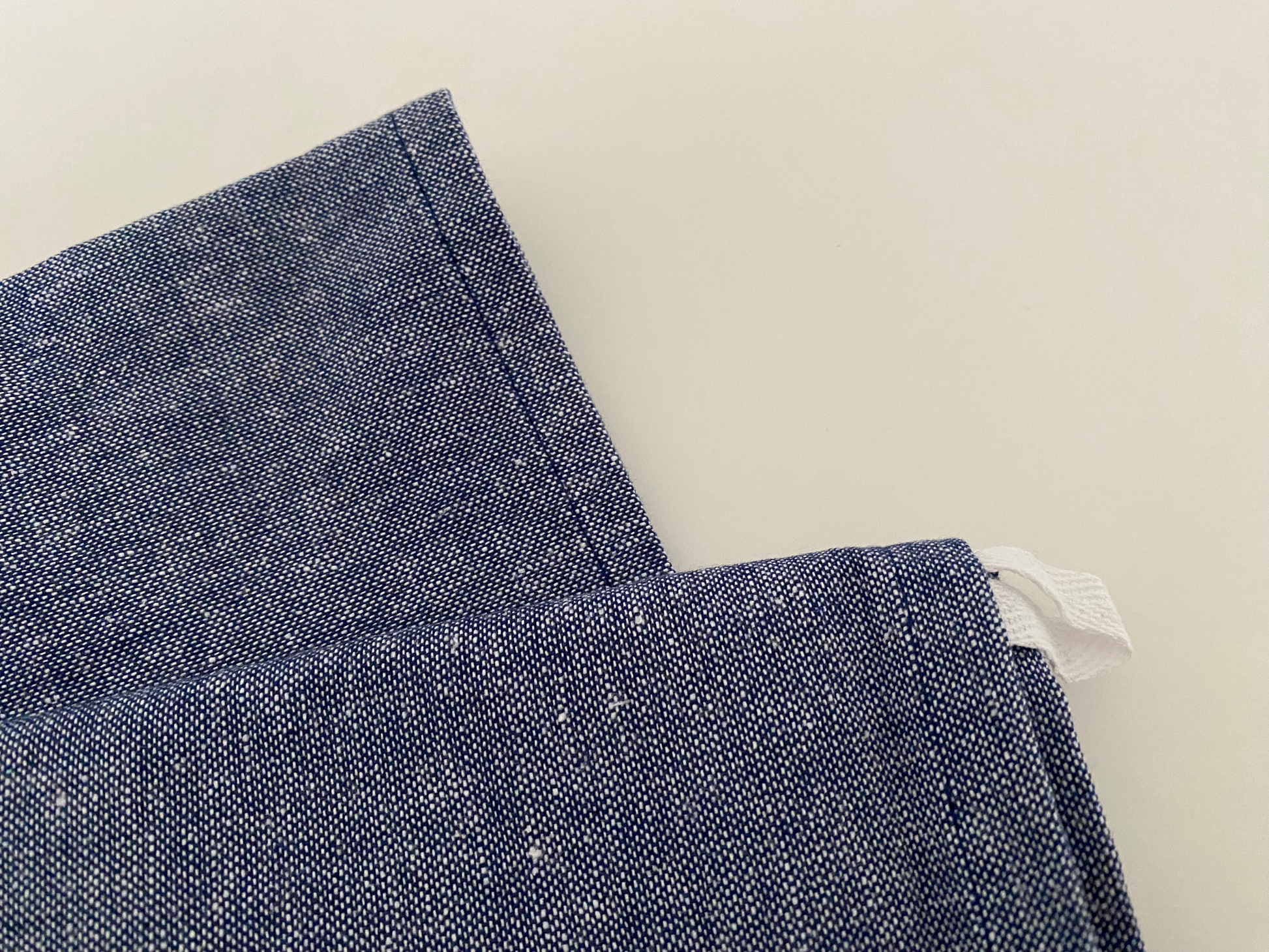 Maskinvask ved højest 40˚C. Må stryges ved høj varme. Må ikke tørretumbles.