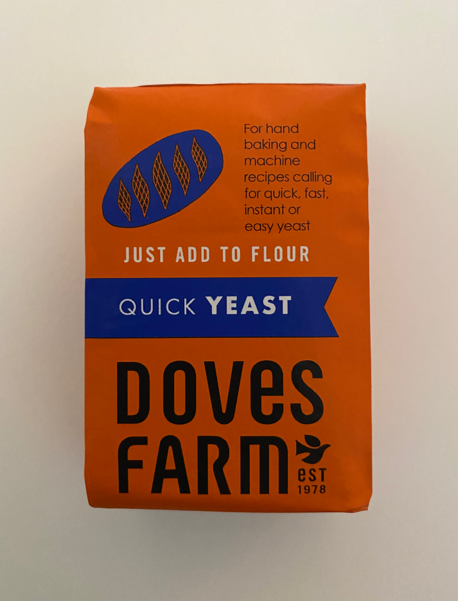 Hurtig hævende gær. Der går 1 tsk (ca. 3 gram) tørgær til 500 g mel, så man kan bage med ca. 20,5 kg mel på en pakke tørgær.