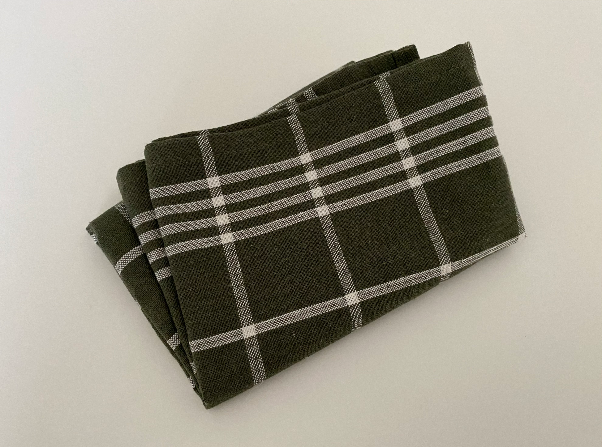 Grønt- og hvidtternet viskestykke i genbrugte materialer.
